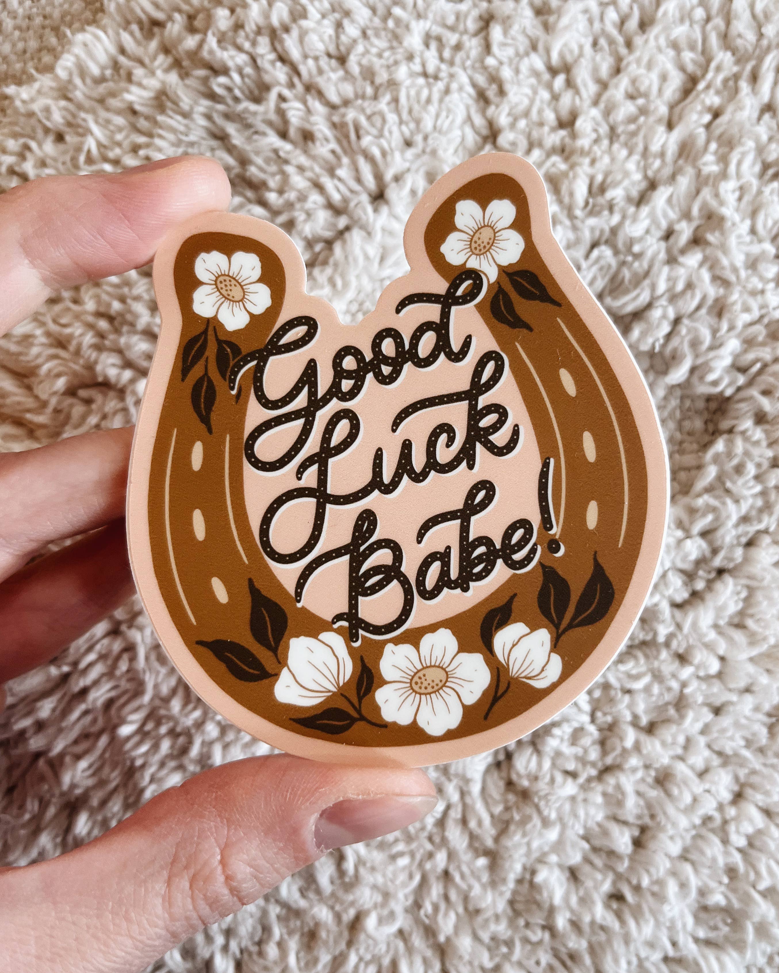 Good Luck Babe! Floral Horseshoe Vinyl Sticker – Western Style