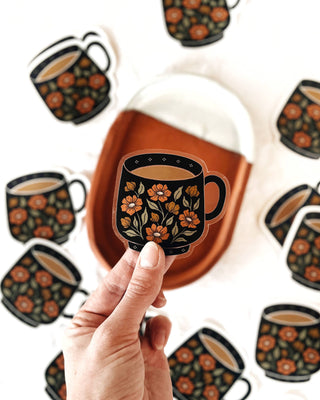 Floral Coffee Mug Tea Cup Vinyl Sticker - Clear Background