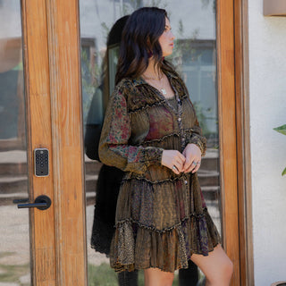 Amber Mosaic | Mixed Motif Babydoll Shirt Dress