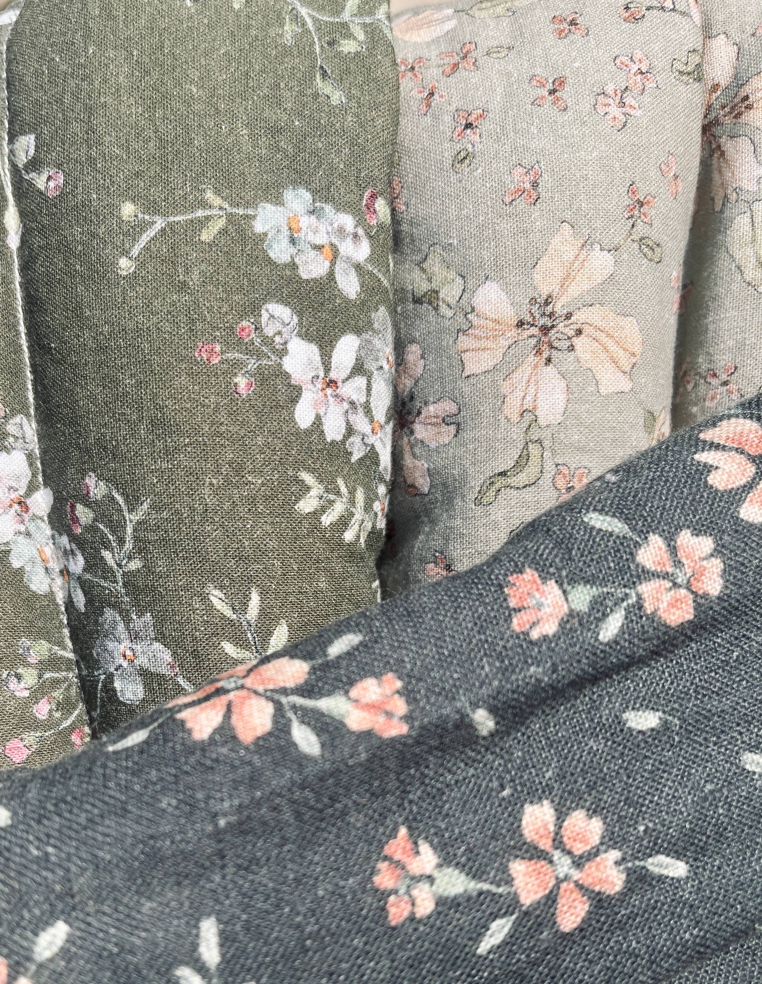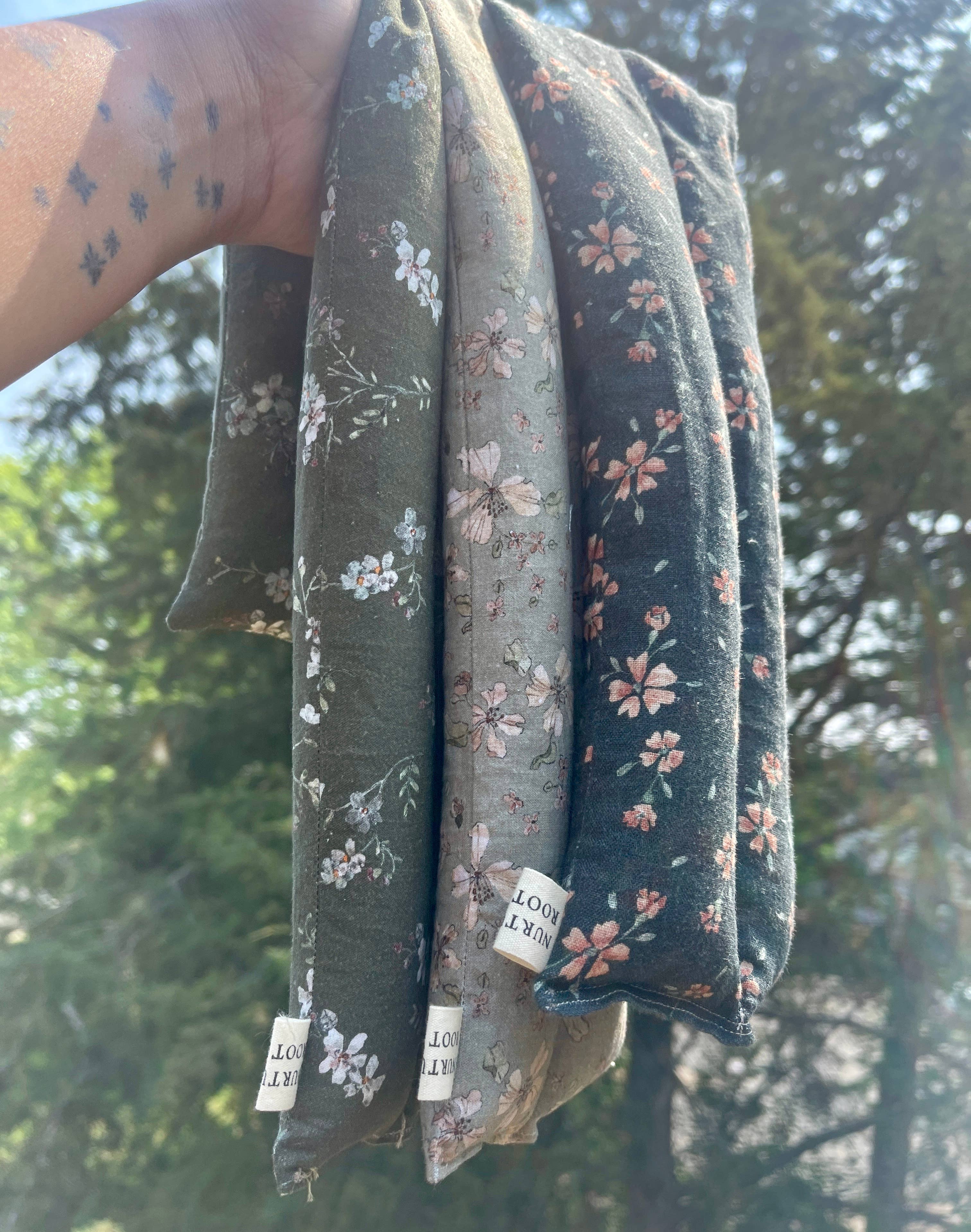 Handmade to order with Oeko-Tex Standard certified 100% cotton or linen in beautiful assorted florals and nature inspired colors, filled with rice and with or without organic lavender buds/ chamomile buds/ peppermint leaves and essential oils for a very light, relaxing scent. Shape is made to rest along the base of your neck and over shoulders, or around belly during pregnancy+birth to ease muscle tension and aid in relaxation and rest. ** The fabric for the bags are selected at random:) Fabric type and pattern will come in an assortment chosen at random (which can include fabric not pictured)! Instructions: HEATING PAD Heat in microwave for 30-second intervals until reaching desired temp COOLING PAD Freeze for about 2 hours Spot clean when necessary Each bag measures about 24" x 4". As these are handmade, dimensions may vary slightly About 1lb 13oz