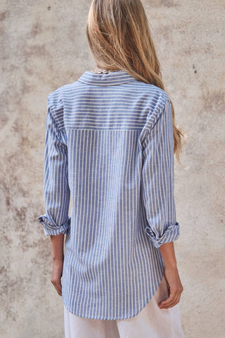 Coastal Striped Linen-Blend Button Down Shirt