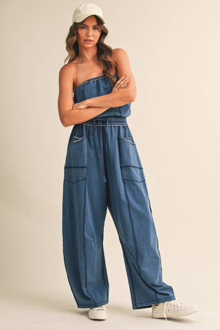 Strapless Barrel Pants Jumpsuit with Tie Waist | Laciann Collective