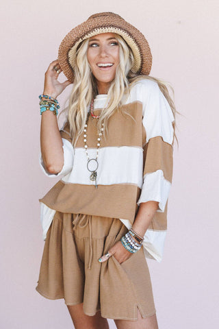 Perfect Match Striped Top & Flutter Shorts Set - Mud Ivory | Laciann Collective