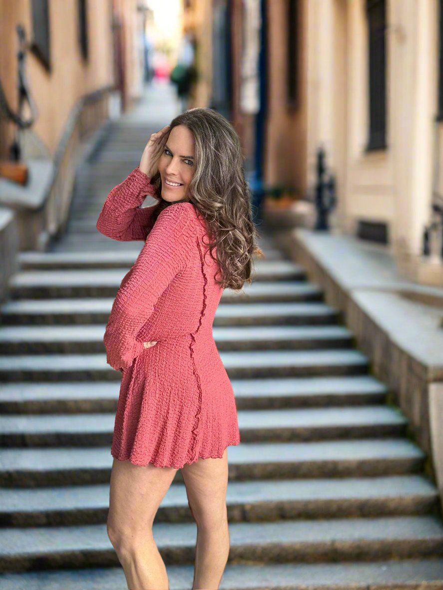 The Dried Chili hue adds a warm, earthy pop to your wardrobe, making it ideal for fall outings, boutique brunches, or casual date nights. Whether paired with boots and a denim jacket or styled solo with statement earrings, this dress moves effortlessly from day to night.