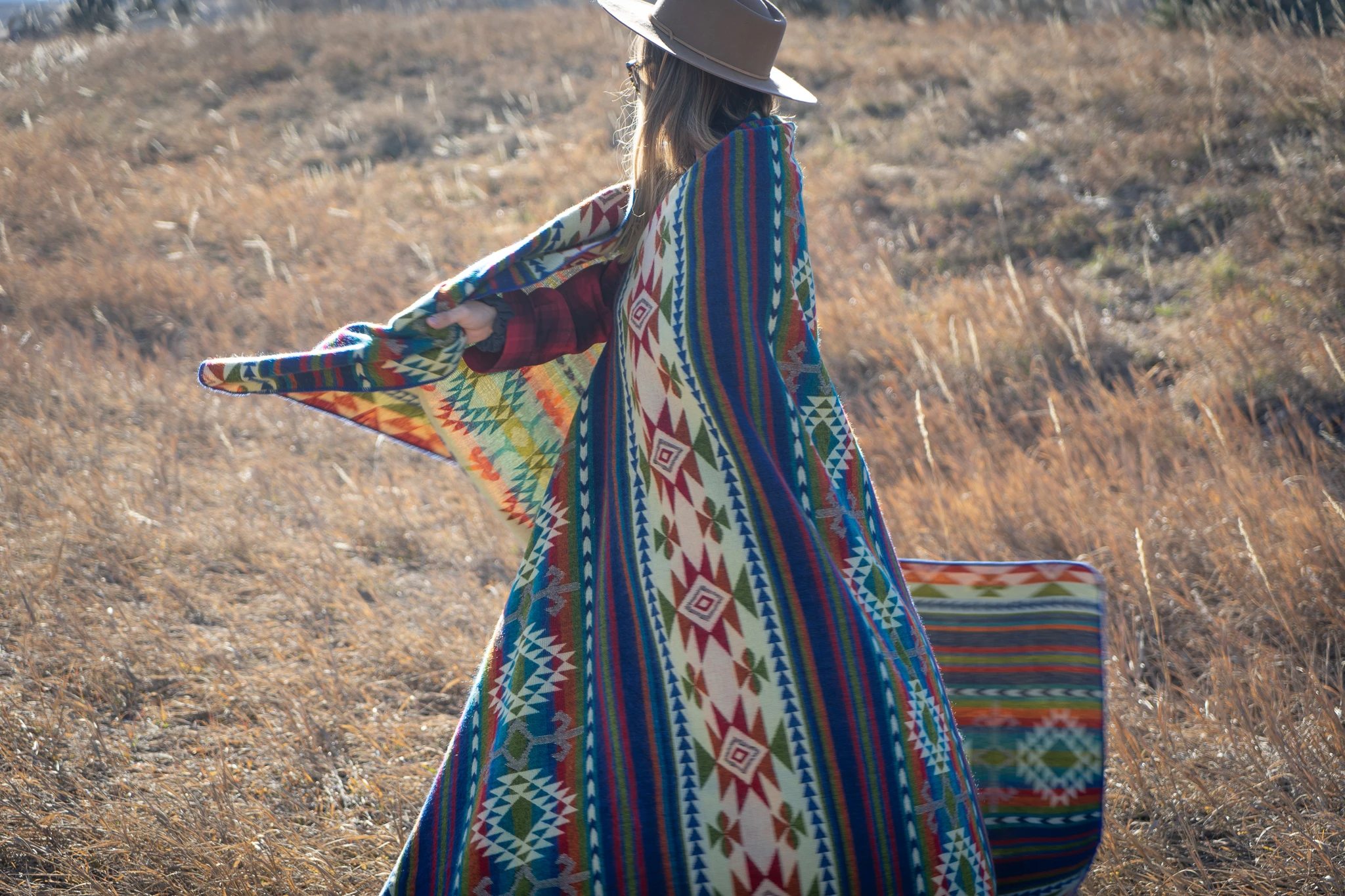 - Drape over a sofa or armchair for a bold boho-western color pop
