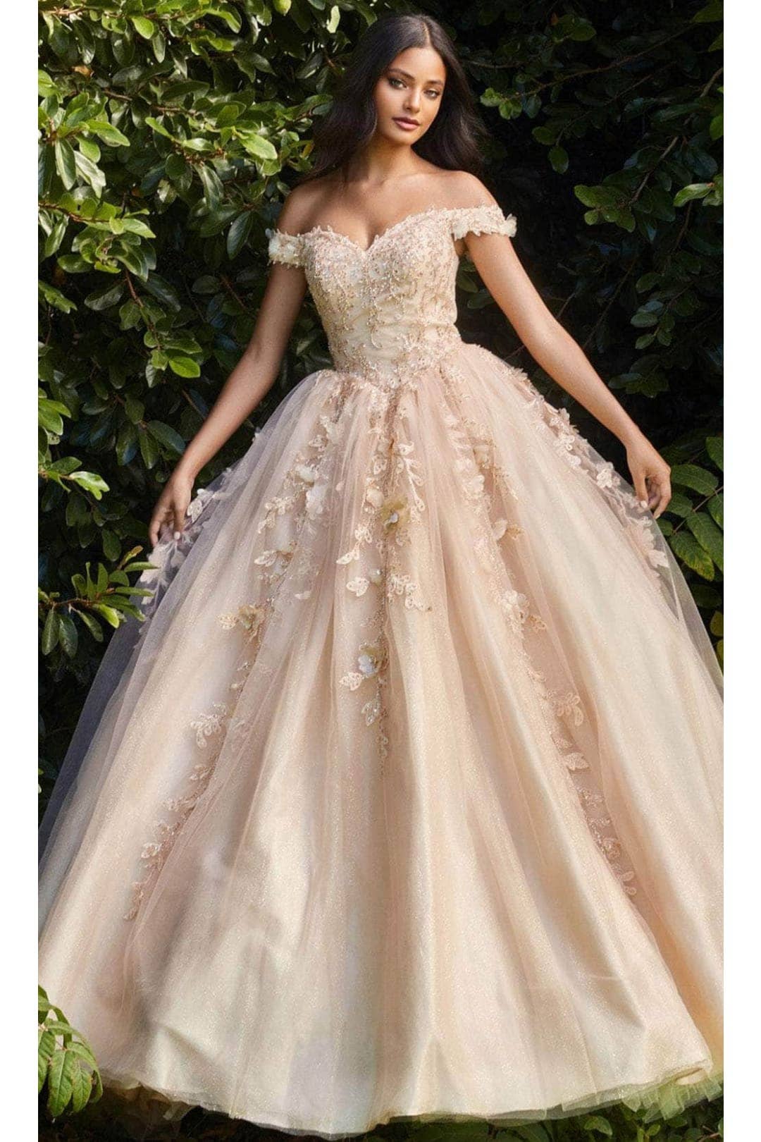 Featuring a graceful off-shoulder design, delicate floral embroidery, and a classic lace-up back, this dress is as stunning as it is flattering. The sweetheart neckline completes the look, making it a perfect choice for a quinceañera princess