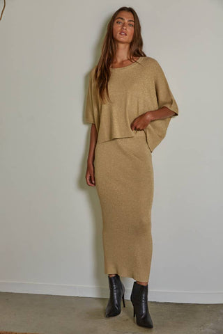 Knit Sweater Ribbed Pencil Midi Skirt