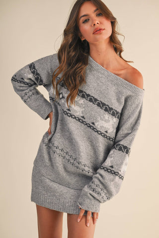 FROSTY REINDEER OFF THE SHOULDER COZY SWEATER SKIRT SET