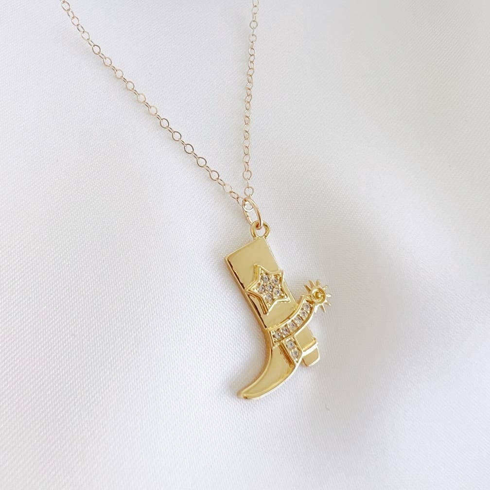Country Girl Cowboy Boot Bachelorette Necklace Gold Filled