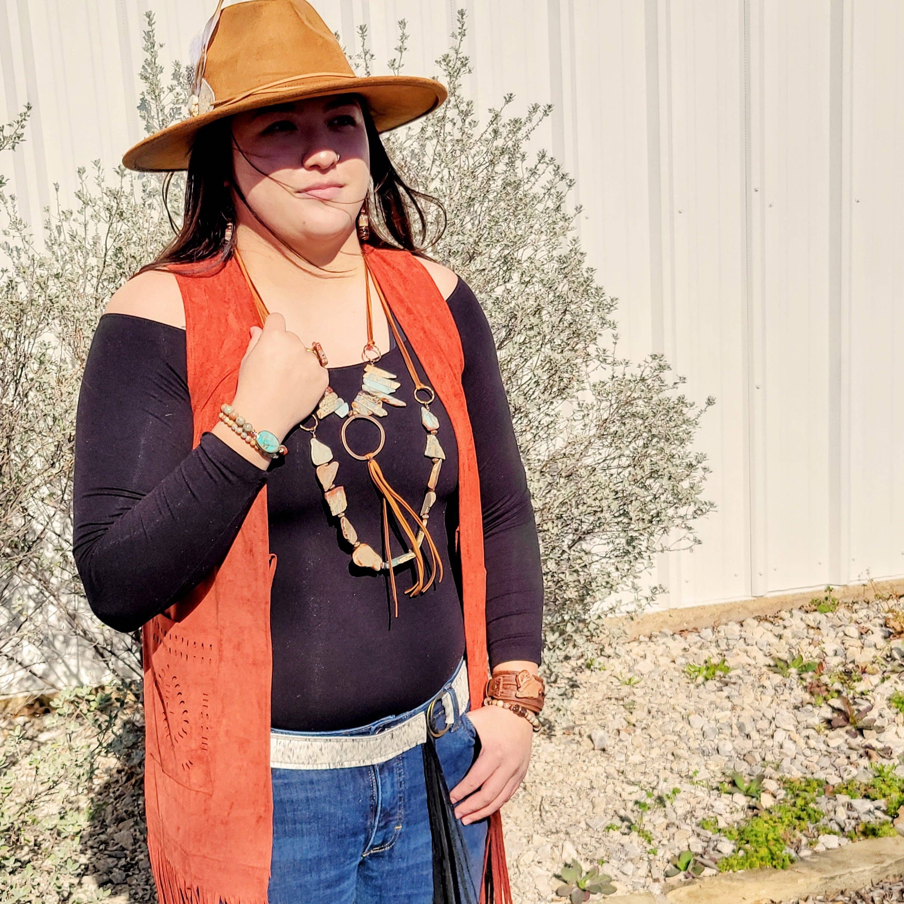 This handcrafted Aqua Terra Slab Necklace boasts a unique artisan design that exudes a boho charm. Elevate any outfit with this one-of-a-kind piece, showcasing your individual style and sophistication. Made with quality materials, it's the perfect addition to any jewelry collection.