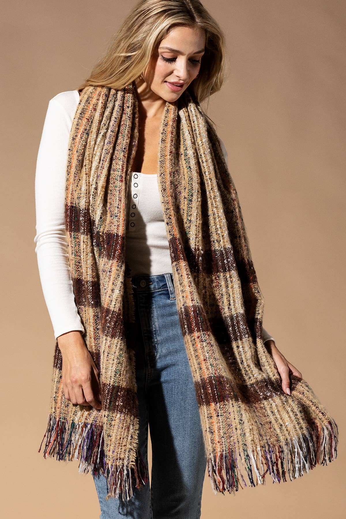 Luxurious, versatile and stylish, the Multi Color Oblong Scarf is crafted with only the finest knit yarn dye for a sumptuously soft feel. Showcasing a beautiful boucle texture and playful fringe accent, this scarf is the perfect accessory for any outfit.