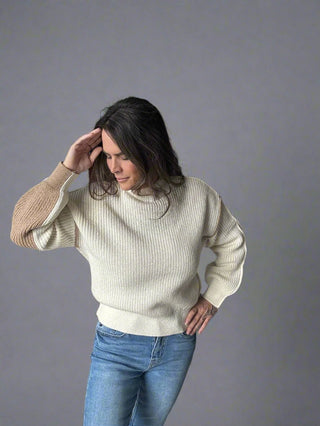 COLORBLOCK MOCK NECK SWEATER
