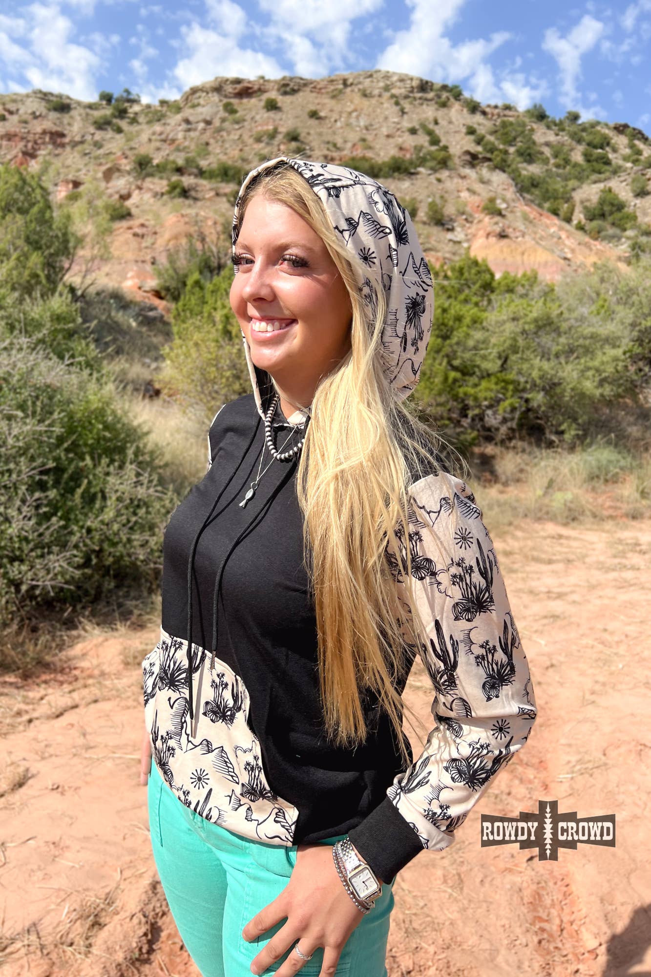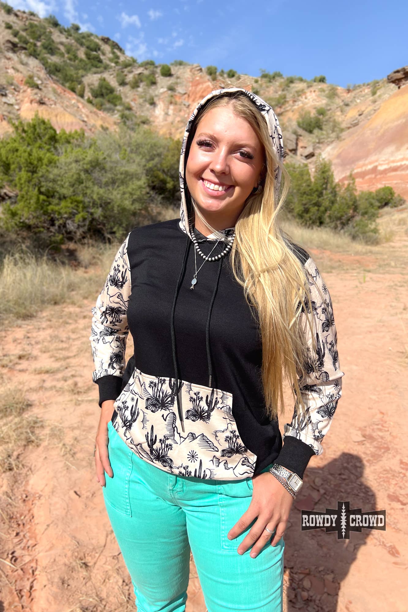 Embrace the spirit of the southwest with our Cactus Plains Hoodie. Featuring a stunning desert print and front pockets, this hoodie is both stylish and practical. Made from comfortable fabric, it's true to size and perfect for any adventure. Elevate your wardrobe with this on-trend piece!