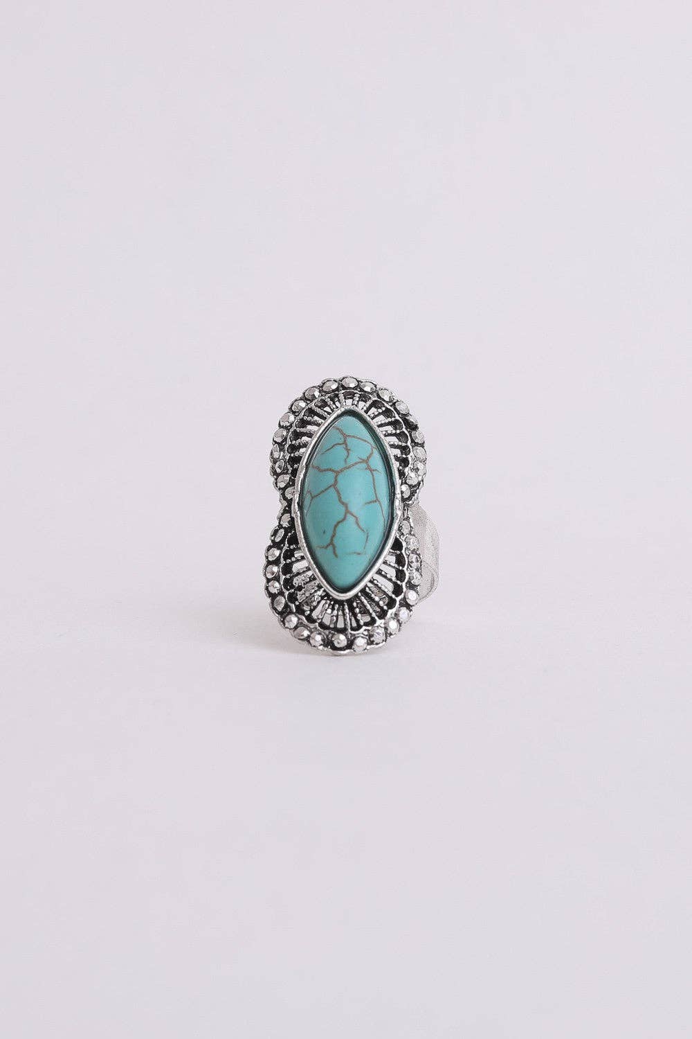 • Eye-catching turquoise stone center