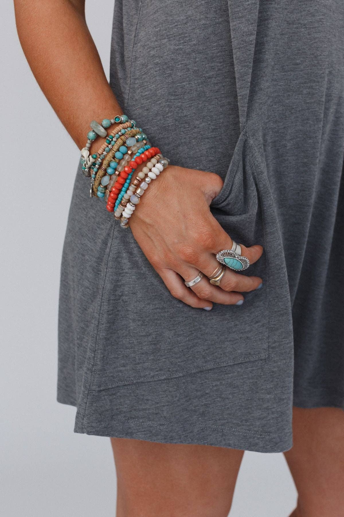 Every boho gal needs a ring collection they adore and it's just not complete without the Go West Adjustable Turquoise Ring! This statement piece features intricate metal details in an oval shape to perfectly outline your finger with an eye-catching turquoise stone in the center.